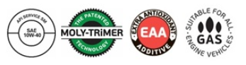 MITASU MOLY-TRIMER SM/CF 10W-40 Synthetic Blended jest przeznaczony do stosowania w szerokim zakresie temperatur. Spełnia wymagania większości nowoczesnych pojazdów wyposażonych w silniki z bezpośrednim wtryskiem paliwa z układami zmiennych faz rozrządu oraz silniki turbodoładowane lub bez turbodoładowania zbudowane zgodnie z najnowszymi normami środowiskowymi. MITASU MOLY-TRIMER SM 10W-40 Synthetic Blended może być stosowany w silnikach zasilanych gazem, w których zalecane są oleje średniopopiołowe o wyższej ochronie przed zużyciem zaworów.