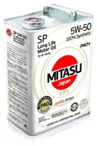 Charakteryzujący się wysokim wskaźnikiem lepkości i niskim zużyciem oleju, całoroczny, w pełni syntetyczny olej silnikowy MITASU PAO Plus SP 5W-50 100% Synthetic zapewnia: